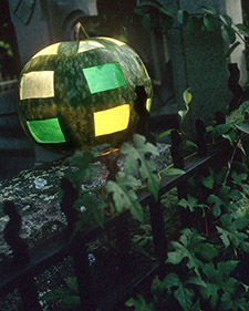 Now hang the lantern up from a ceiling light in your home. Every time the light is turned on your delightful design will glow like a stained glass window in a church. The lantern is a fun and unusual Halloween decoration.